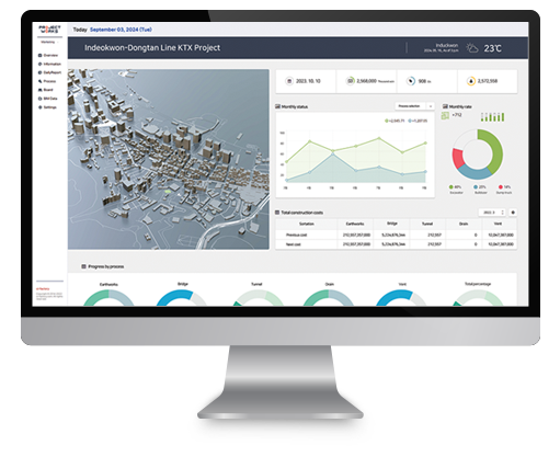 BIM 모델 기반으로 4D/5D를 통합 관리하며 건설 프로젝트의 유기적인 협업이 가능한 BIM기반 디지털 건설사업 관리 플랫폼으로 프로젝트의 모든 단계에서 효율성과 정확성을 높일 수 있으며 리스크를 줄이고 비용을 절감, 기간 단축 등을 실현할 수 있습니다